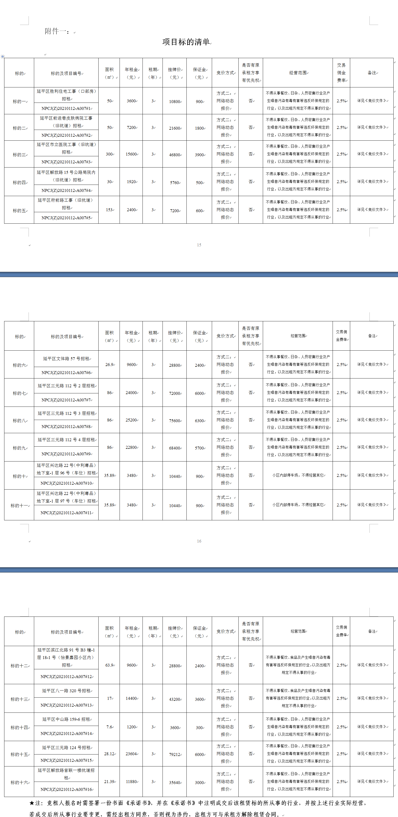 交易保證金(元) | 詳見附件一 | 是否設置原承租人優(yōu)先權(quán) | 否 | | |||||||||||||||