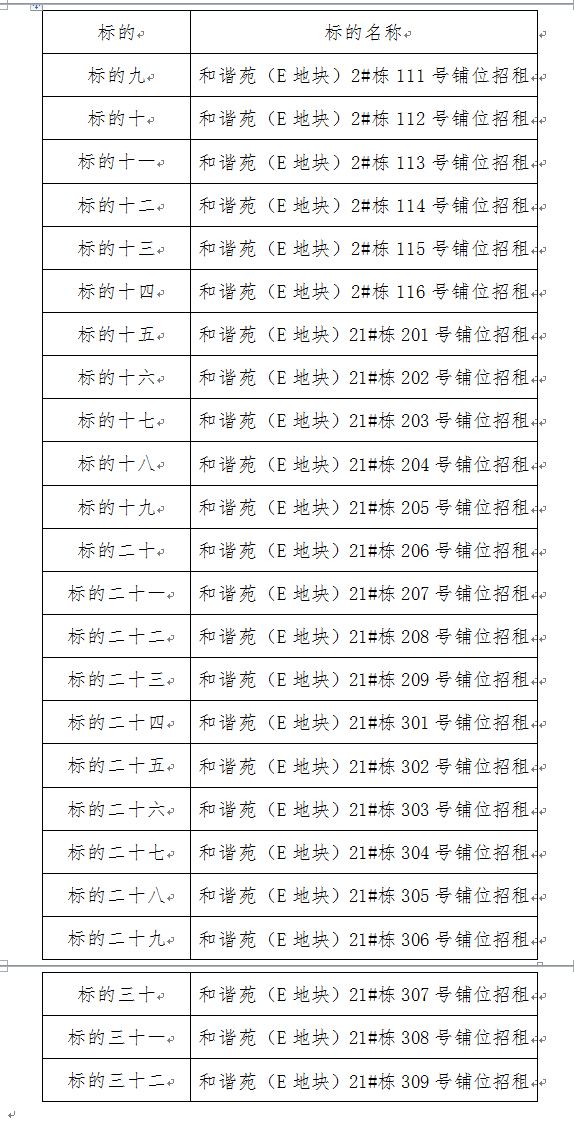補(bǔ)充公告 各服務(wù)對(duì)象: 南平市產(chǎn)權(quán)交易中心有限公司2020年3月13日發(fā)布房產(chǎn)招租公告(瑞錦苑(C地塊)4#棟101號(hào)鋪位、瑞錦苑(C地塊)4#棟102號(hào)鋪位等32個(gè)鋪位招租)項(xiàng)目中,“標(biāo)的九至三十二”的標(biāo)的名稱發(fā)生變更,現(xiàn)補(bǔ)充公告如下: 原公告內(nèi)容: 變更為: 原公告其他內(nèi)容不變,中標(biāo)承租人以本補(bǔ)充公告確定的標(biāo)的名稱簽署合同。 南平市產(chǎn)權(quán)交易中心有限公司 2020年3月27日 |